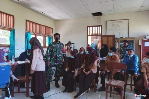 Sinergritas Babinsa dan Babinkamtibmas kawal vaksinasi Covid 19 ke SMPN 37 Halsel