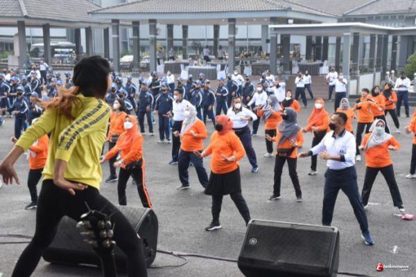 Dengan tetap disiplin terapkan protokol kesehatan Covid-19, Akademi Angkatan Laut (AAL) menggelar olahraga bersama perdana di era new normal pasca Surabaya dinyatakan PPKM Level 1 medio Oktober lalu dalam rangka menjalin silaturahmi dan peringatan Hari Pahlawan tahun 2021 yang digelar di Lapangan Aru, Kesatrian AAL Bumimoro, Surabaya, Selasa (9/11).
