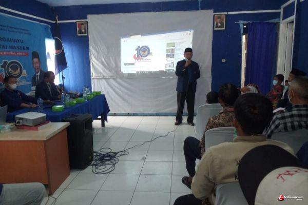 Pada sambutannya Ketua DPD partai Nasdem Kabupaten Kendal yang juga anggota DPRD Kabupaten Kendal, Siswoyo menjelaskan perayaan HUT Partai Nasdem ke-10 kita isi dengan menyaksikan bersama pidato Presiden RI Jokowi secara virtual.