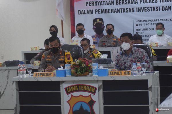 Kapolres Tegal Kota AKBP Rahmad Hidayat pada saat Konferensi Pers mengatakan, ini merupakan amanah dalam rangka memberantas investasi dan pinjaman online ilegal. Dengan banyaknya keluhan dari masyarakat, kami bersama OJK menginisiasi dengan kesepakatan bersama sebagai penguat. Sebagai tindak lanjut penandatanganan 5 kementerian beberapa waktu lalu," terang Kapolres.