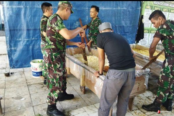 Dalam rangka memperingati Maulid Nabi Muhammad SAW di Masjid Jami Desa/Kecamatan Warungasem Kab. Batang, anggota TNI dari Koramil 11/Warungasem Kodim 0736/Batang ngayub bagyo membuat nasi uduk bersama pengurus Masjid, Kamis (18/11/21).