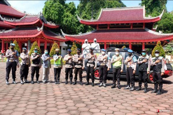 Polda Jateng Bagikan Masker dan Semprot Disinfektan di Kawasan Kelenteng Sam Po Kong