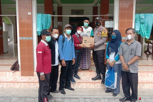 Kapolsek Bersama Kasubag Perencanaan Keuangan Kecamatan Cepiring, Bagikan Masker Dan Sanitizer di Masjid Cepiring