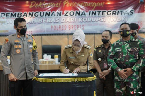 Sementara itu Bupati Brebes Hj. Idza Pariyanti mengapresiasi dan dukungan penuh kepada Polres Brebes atas komitmennya dalam pembangunan zona integritas wilayah bebas dari korupsi dan wilayah birokrasi bersih dan melayani.