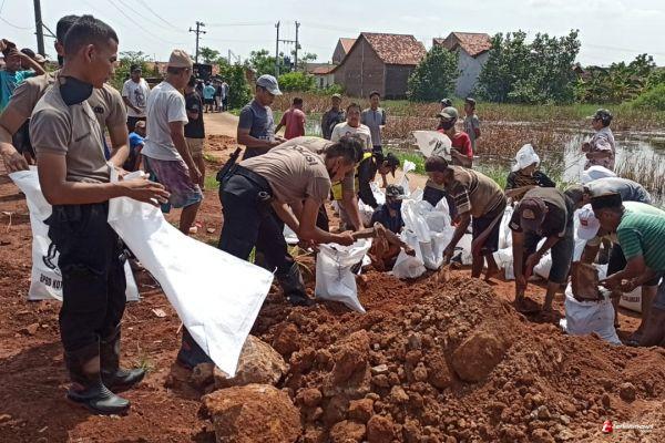 Personel Samapta Polres Pekalongan Kota Bantu Warga Buat Tanggul Darurat, Sungai Bremi Meluap di Terjang Air Rob