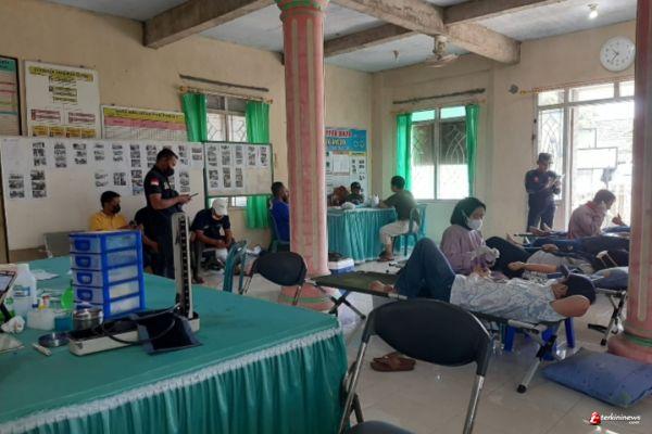 Bhabinkamtibmas Desa Mojo Polsek Gemuh BRIPKA Tohirman melaksanakan sambang desa serta pemantauan donor darah dari GP Ansor Desa Mojo dan memberikan penyuluhan kepada masyarakat supaya disiplin protokol kesehatan guna memutus mata rantai Covid-19, Kamis (2/12/2021).