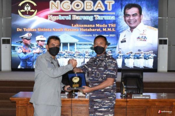 Deputi Bidang Operasi Latihan Badan Keamanan Laut Republik Indonesia (Bakamla RI), Laksamana Muda TNI Dr. T.S.N.B. Hutabarat, M.M.S., menjadi narasumber Program Ngobat (Ngobrol Bareng Taruna) yang digelar Akademi Angkatan Laut (AAL) di Gedung Mas Pardi, Kesatrian AAL Bumimoro, Surabaya, Minggu (5/12).
