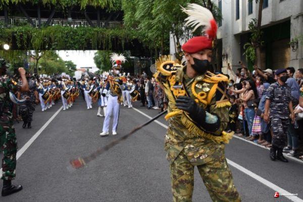 Tepat di tanggal peringatan Hari Armada, 5 Desember 2021 ini, 108 personel Genderang Suling (GS) Gita Jala Taruna Akademi Angkatan Laut (AAL) meriahkan Kirab Pasukan, Navy Day Hari Armada 2021 mulai dari Siola-Tunjungan hingga Gedung Negara Grahadi, Surabaya hari Minggu petang.