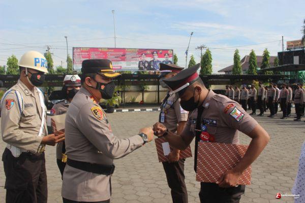 TEGAL - Polres Tegal Kota Polda Jateng melaksanakan Apel pemberian penghargaan kepada masyarakat yang berhasil dalam membantu tugas Polri bertempat di Lapangan Apel Mapolres, Senin (6/12/2021).