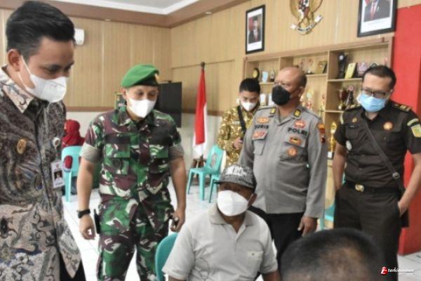 Bupati Kendal Dico M. Ganinduto memantau langsung penyaluran Bantuan Tunai untuk Pedagang Kaki Lima dan Warung (BTPKLW) yang disalurkan melalui Kodim 0715/Kendal, Selasa (7/12/2021).