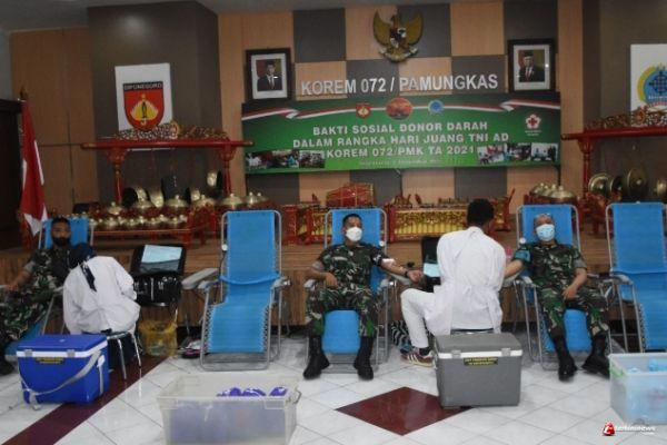Peringati Hari Juang TNI AD Tahun 2021, Korem 072/Pamungkas Gelar Donor Darah