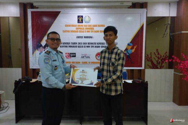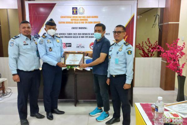 Atas capaian kinerja di tahun 2021, menurut Reza Fatahillah tidak terlepas dari peran penting sejumlah pihak baik itu dari instansi pemerintah setempat juga peran wartawan yang telah membantu dan mendukung kinerja petugas Imigrasi Dabo Singkep dalam menjalankan tugas, sebagai bentuk apresiasi Imigrasi Dabo Singkep memberikan piagam penghargaan pada pihak kecamatan, organisasi wartawan dan sejumlah media online.