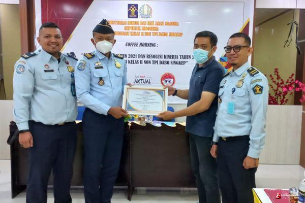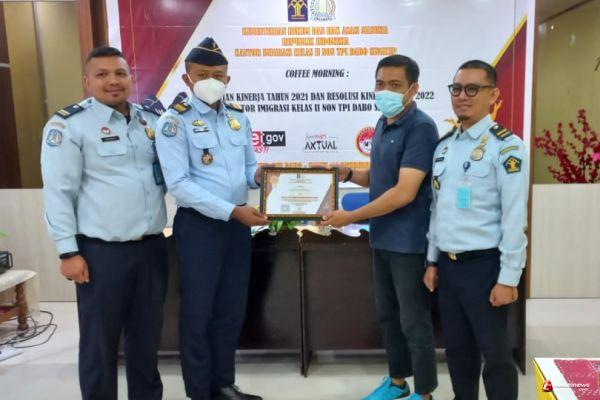 Kepala Kantor Imigrasi Kelas II Non TPI Dabo Singkep, Nayaka Duta Harahap melalui Kasi Dokumen Perjalanan dan Izin Tinggal Keimigrasian, Reza Fatahillah mengatakan, pada kesempatan ini kami memang memberikan penghargaan kepada 2 organisasi media yang selama ini bersedia bekerjasama dengan kami yakni Persatuan Wartawan Indonesia (PWI) Kabupaten Lingga yang diketuai oleh Jhony Prasetya dan juga Serikat Media Siber Indonesia (SMSI) kabupaten Lingga yang ketuanya Kasmadi.