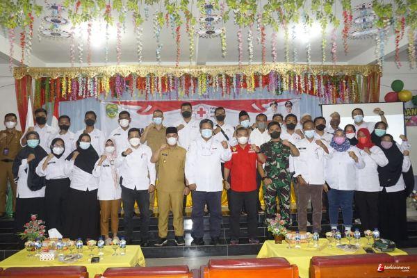 LINGGA - Bupati Lingga, Muhammad Nizar membuka kegiatan Musyawarah Kerja (Muker) dan Orientasi Palang Merah Indonesia (PMI) Kabupaten Lingga, ruang pertemuan Hotel Lingga Pesona, Daik Lingga, Selasa (21/12/2021).