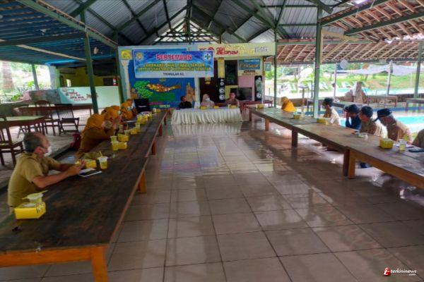 Anggota Polsek Kaliwungu Aipda Krisyanto bersama Kapolsek monitoring kegiatan rapat evaluasi percepatan vaksin Covid19 Kecamatan Kaliwungu selatan bertempat di Rumah makan Duren jati Desa Darupono Kecamatan Kaliwungu Selatan, Kabupaten Kendal. Selasa (21/12/2021) pukul 09.00 Wib sampai selesai