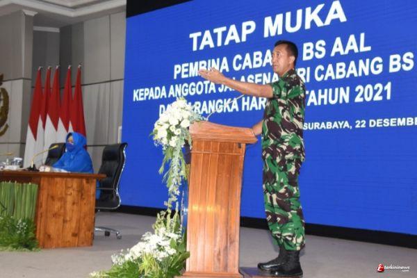 Dipenghujung tahun 2021 ini, Gubernur Akademi Angkatan Laut (AAL) sekaligus Pembina Cabang Berdiri Sendiri (CBS) Jalasenastri AAL, Mayjen TNI Nur Alamsyah melaksanakan silaturahim yang dikemas dalam acara Tatap Muka dengan anggota CBS Jalasenastri AAL secara online dan offline di Gedung Mas Pardi Kesatrian AAL Bumimoro, Surabaya, Rabu (22/12).