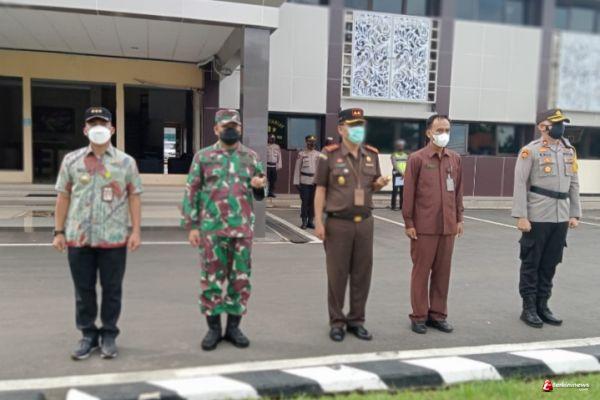 Komandan Kodim 0736/Batang Letkol Arh Yan Eka Putra bersama anggota jajaran Kodim Batang mengikuti Apel Operasi Lilin Candi 2021 di halaman Mapolres Batang, Kamis (22/12/21) pagi.