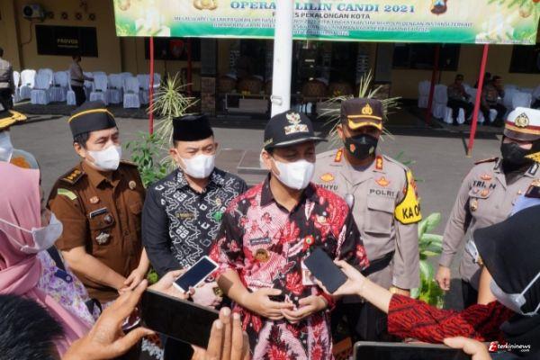 Wali kota Pekalongan Achmad Afzan Arslan Djunaid, SE memimpin kegiatan apel gelar pasukan Operasi Lilin Candi tahun 2021 di Halaman Mapolres Pekalongan kota, Kamis (23/12/2021).