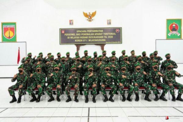Sebanyak 22 Prajurit Wijayakusuma Korem 071/Wijayakusuma yang telah selesai melaksanakan tugas sebagai personel BKO Penebalan Aparat Teritorial di wilayah Kodam XVIII/Kasuari Tahun 2020, tiba di home base Makorem 071/Wijaykusuma. Setibanya di home base, mereka para prajurit Wijayakusuma ini, disambut langsung oleh Danrem 071/Wijayakusuma beserta jajarannya.