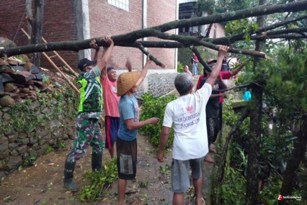 Enam rumah milik warga di Desa Banteng, Kecamatan Tersono, Kabupaten Batang rusak akibat tertimpa pohon tumbang. Mendapat laporan dari warga ada kejadian pohon tumbang Babinsa Koramil 06/Tersono Sertu Joko Riono langsung mendatangi TKP dan berkoordinasi dengan Kepala Desa Banteng untuk melaksanakan pemotongan pohon yang tumbang serta membersihkan ranting-ranting yang menimpa rumah warga, Jum'at 31/12/2021.
