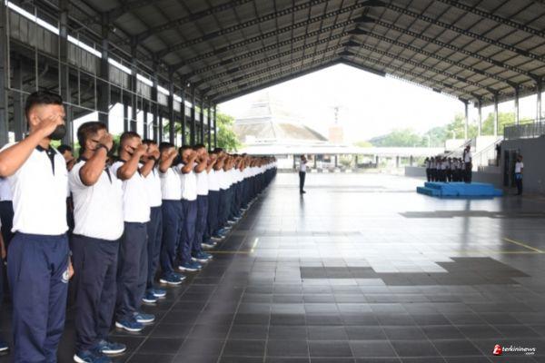 Gubernur Akademi Angkatan Laut (AAL), Mayor Jenderal TNI (Mar) Nur Alamsyah, mengambil Apel Khusus menjelang peringatan Tahun Baru 2022 yang digelar di Indoor Sport Jala Krida Raga, Kesatrian AAL, Bumimoro, Surabaya, Jumat (31/12).