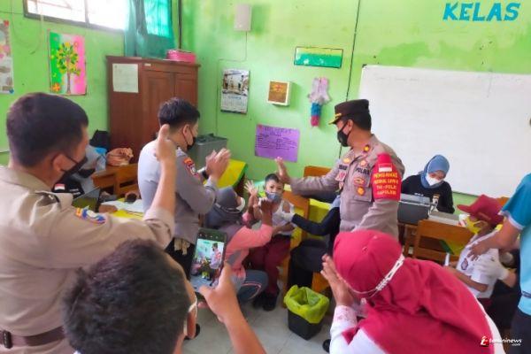 Kapolsek Pekalongan Timur Kompol Junaedi SH, Polres Pekalongan Kota Polda Jawa Tengah, monitoring langsung dan pengamanan Vaksinasi di SD N 2 Poncol, Kecamatan Pekalongan Timur, Selasa (4/1/2022).