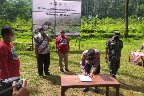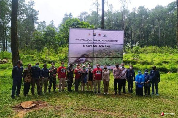 BKSDA Jateng dan Kapolsek Limbangan Lepas 150 Ekor Burung Kerak Kerbau di Wana Wisata Gonoharjo