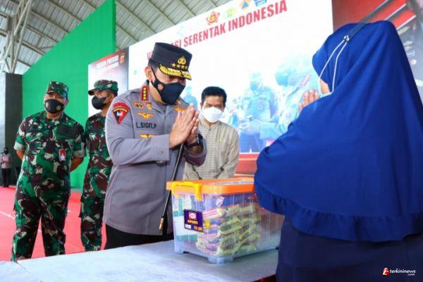 Tinjau Vaksinasi Serentak se-Indonesia, Kapolri Ingatkan Syarat Wajib Laksanakan PTM 100 Persen