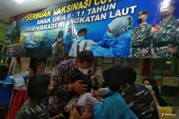 “Untuk vaksinasi anak yang dilakukan vaksinator AAL hari ini, Suditkes menurunkan 20 Tenaga Kesehatan, sedangkan jenis vaksin yang digunakan adalah Vaksin Sinovac,” terang dr. Bambang.