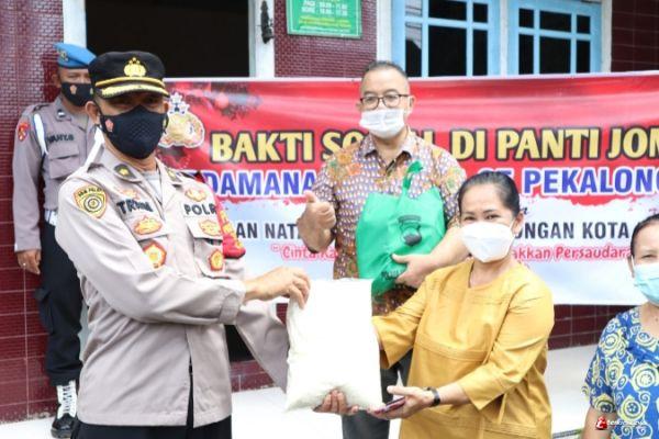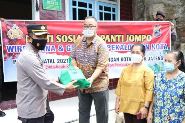 Polres Pekalongan Kota Baksos, Bagikan Sembako Dalam Rangka Natal 2021 dan Tahun Baru 2022 Kepada Panti Jompo Dan Gereja