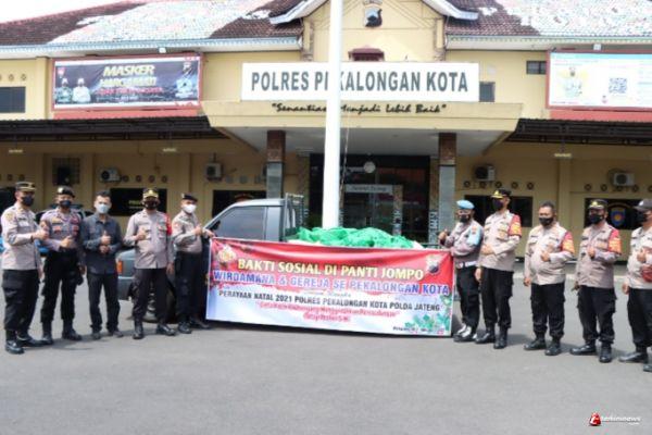 Polres Pekalongan Kota Polda Jateng menggelar kegiatan bakti sosial bagi sembako dalam rangka Natal 2021 dan tahun Baru 2022, Selasa (11/1/2022).
