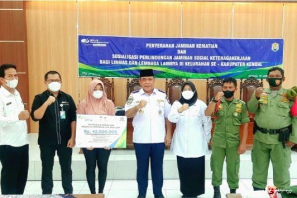 Wakil Bupati Kendal, H. Windu Suko Basuki, S.H hadiri acara penyerahan Program Jaminan Kematian (JKM) dan sosialisasi perlindungan jaminan sosial Ketenagakerjaan bagi Linmas beserta lembaga lainnya di Kelurahan Kecamatan Kendal, Rabu (19/1/2022) bertempat di Aula Kecamatan Kendal.