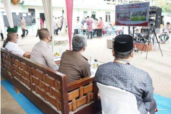 Setelah mengikuti Vidcon, Kapolres Asahan bersama Forkopimda melakukan pemantauan kegiatan Vaksinasi terhadap anak usia 6-11 tahun dan selanjutnya bersilaturahmi dengan pendiri Pesantren Daarul Hikmah Buya A. Fadlillah. (fra)
