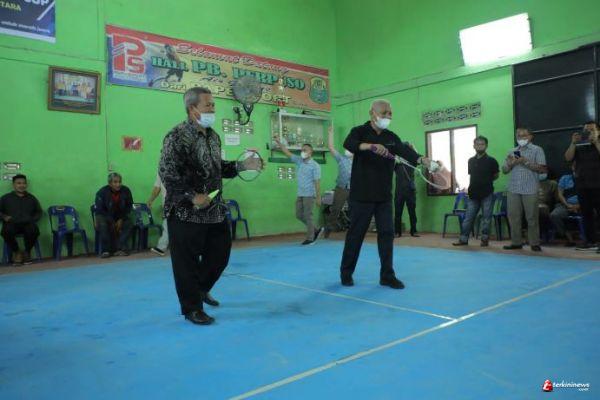 ASAHAN - Bupati Asahan H. Surya, BSc, buka turnamen bulu tangkis Putra Solo Badminton Cup ke XVI Tahun 2022 bertempat di Hall Perpuso Air Genting, Kecamatan Air Batu, Sabtu (22/01/2022).