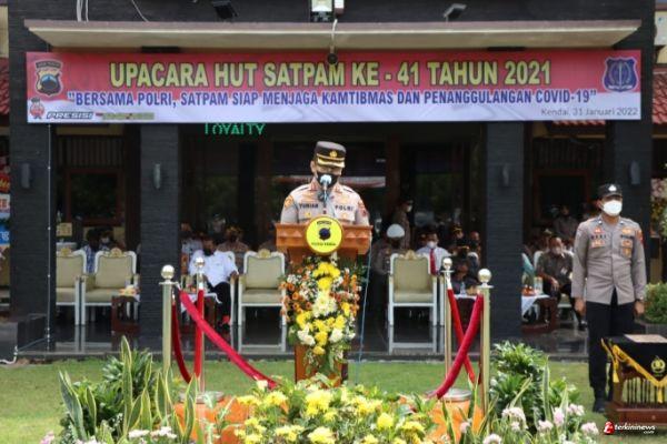 "Peringatan ulang tahun satuan pengamanan ke-41 ini, mengambiltema “bersama polri,satuan pengamanan siap menjaga kamtibmas dan penanggulangan covid-19”,saat ini negara republik indonesia masih diselimuti situasi pandemi covid–19 yang juga masih dialami dinegara–negara lain didunia. Bahkan menjelang akhir tahun 2021 telah muncul varian baru yakni”omicron” yang menurut ahli bahwa penyebaran varian baru ini lebih cepat dibandingkan, dengan varian yang pertama ditemukan di Wuhan-cina," ujar Kapolres Kendal