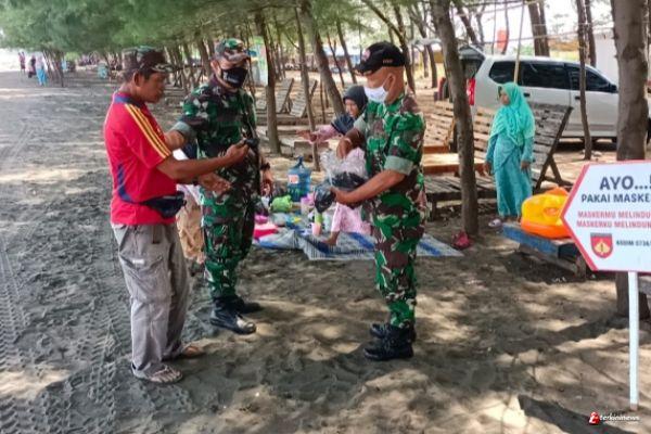 Libur Tahun Baru Imlek, Pantai Jodoh Jadi Sasaran Koramil 03/Gringsing Beri Himbauan Prokes dan Bagikan Masker