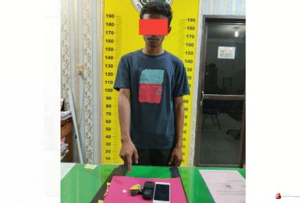 Bersama pelaku, petugas turut mengamankan barang bukti 1 satu plastik kecil diduga narkotika jenis Sabu dengan berat 0.20 Gram, 1 buah hp Nokia senter warna hitam, 1 buah hp android merek Oppo warna putih/gold, 1 unit sepeda motor merek honda warna hitam kombinasi merah muda BK 5583 LU.