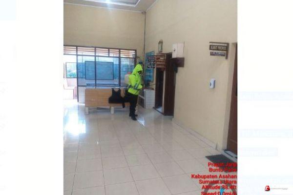 melakukan penyemprotan cairan desinfektan di seluruh ruangan dan lingkungan Mako Prapat Janji, Sabtu (26/2/2022).