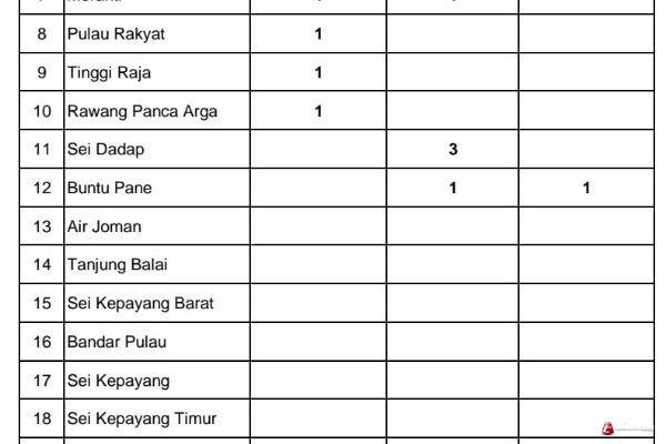 ASAHAN - Rekapitulasi Harian Covid – 19 per Kecamatan untuk hari ini sebagaimana data surveilans dari seluruh Puskesmas di wilayah Kabupaten Asahan yang di kelola Dinas Kesehatan ada 16 orang yang Terkonfirmasi Positif, ada 23 orang yang Sembuh dan ada 1 orang yang meninggal dunia akibat Covid – 19 Selasa (08/03/2022).