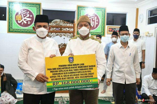 Pada kesempatan itu, Gubernur Ansar menyerahkan bantuan hibah sebesar 138 juta rupiah untuk Masjid Al-Mukminin dan 368 Juta rupiah untuk TPQ Al-Ikhlas.