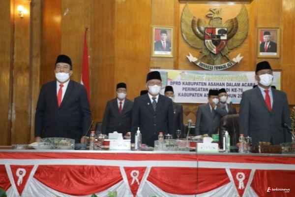 ASAHAN - Untuk memperingati Hari Jadi ke-76 Kabupaten Asahan Tahun 2022, DPRD Kabupaten Asahan menggelar Rapat Paripurna di Aula Rambate Rata Raya Sekretariat DPRD Kabupaten Asahan yang dipimpin langsung oleh Ketua DPRD Kabupaten Asahan H. Baharuddin Harahap, SH, MH, Selasa (15/03/2022).
