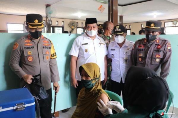 Kapolres Kendal AKBP Yuniar Ariefianto yang hadir meninjau pelaksanaan vaksinasi di Balaidesa Rejosari, didampingi Camat Kangkung, Ardhi Prasetyo, Kapolsek Kangkung AKP Asri, dan Kepala Desa Rejosari Mukhtarom.