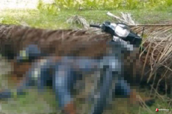 Jasad Azmi sa'at ditemukan dalam kondisi sudah mulai membusuk, tertimpa pohon sawit tua yang tumbang bersama sepeda motor merek Revo BK 4187 QG yang kondisinya rusak parah.