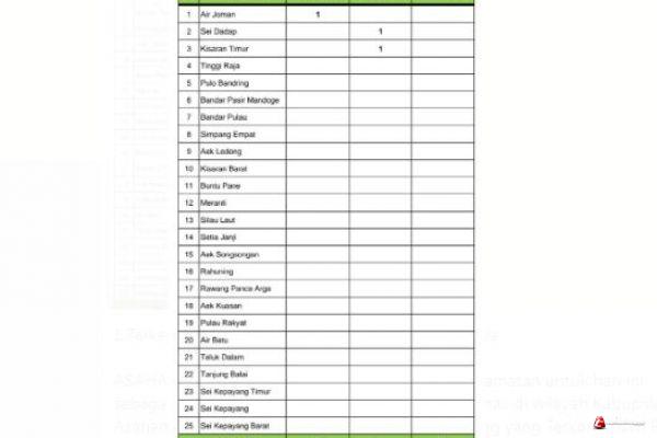 ASAHAN - Rekapitulasi Harian Covid – 19 per Kecamatan untuk hari ini sebagaimana data surveilans dari seluruh Puskesmas di wilayah Kabupaten Asahan yang di kelola Dinas Kesehatan ada 1 orang yang Terkonfirmasi Positif, ada 2 orang Sembuh dan tidak ada orang yang meninggal dunia akibat Covid – 19.