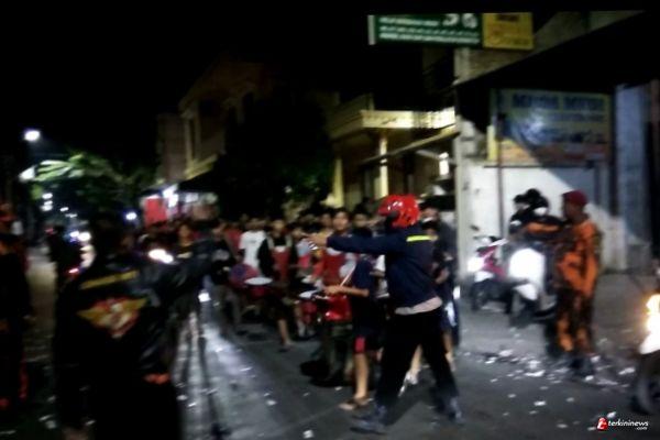 Aksi kejar-kejaran pun terjadi namun banyaknya warga yang berkerumun membuat petugas kewalahan. Petugas mengamankan petasan berukuran besar yang belum sempat dibakar, dan membubarkan kerumunan warga. Petugas juga menghalau pemuda yang bermain drum blek melintas di perempatan sawah jati karena bisa memicu kerumunan dan aksi tawuran bisa saja terjadi.