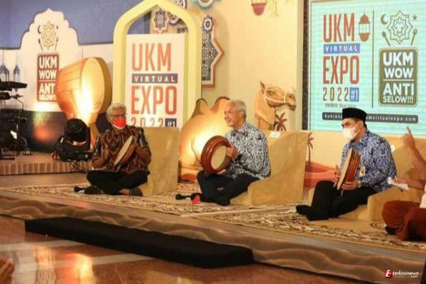 Gubernur Jawa Tengah Ganjar Pranowo membuka ajang UKM Virtual Expo (UVO) 2022, Senin (18/4/2022). Tahun ini, UVO mengambil konsep hybrid yang memadukan jualan online dan offline.