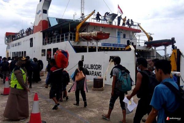 Gelombang arus mudik dari Kalimantan Tengah yang tiba di Pelabuhan Kendal menggunakan KMP Kalibodri, Jumat 29 April 2022 meningkat.