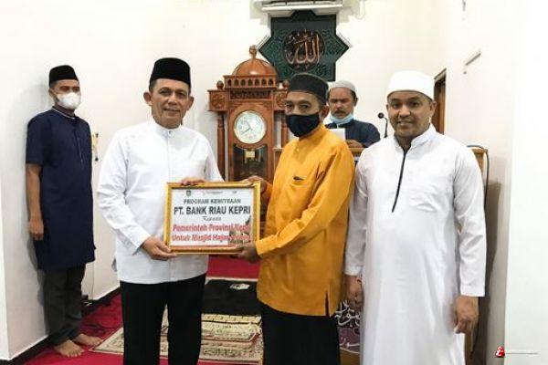 Gubernur Ansar pada kesempatan itu sekaligus menyerahkan dana bantuan Corporate Social Responsibility (CSR) dari Bank Riau Kepri, didampingi langsung oleh Pimpinan Cabang Bank Riau Kepri Tanjungpinang Wan Abdurrahman yang diterima oleh Pengurus Masjid Hajar Aswad.