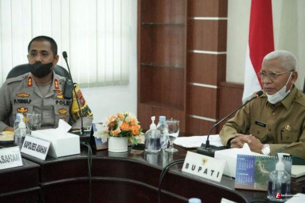 ASAHAN - Bupati Asahan H. Surya, BSc bersama dengan Dandim 0208/Asahan, Kapolres Asahan, Kajari Asahan, Ketua PN Kisaran, Mewakili Danlanal TBA, Mewakili Danyon 126/KC menerima audiensi Asosiasi Buruh Kabupaten Asahan di Aula Mawar Kantor Bupati Asahan, Selasa (10/05/2022).