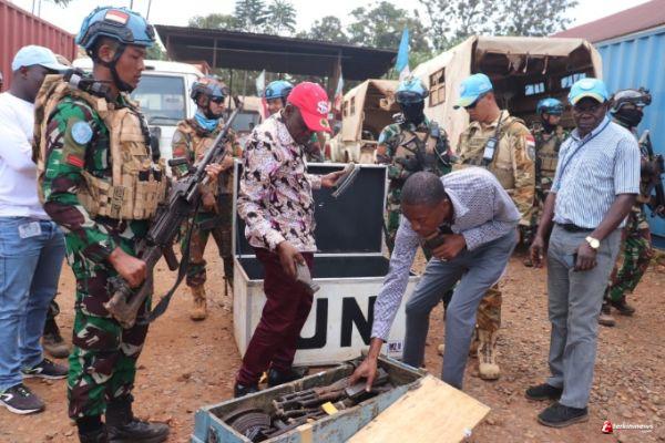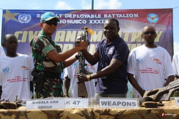 SatgasBatalyon Gerak Cepat (BGC) Konga TNI XXXIX-D/Monusco memfasilitasi penyerahan diri kelompok milisi RM Mabala pimpinan Mr Justin Mabala kepada Disarmament Demobilization Repatriation (DDR) di Desa Nyalubemba yang berjarak sekitar 77 Km dari Combat Operation Base (COB) Walungu, Kongo Afrika, Selasa (10/5/2022).